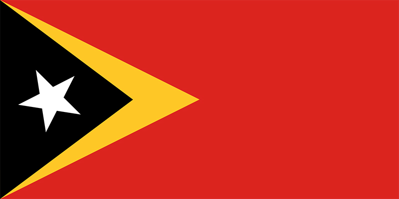 Flag of East Timor,The Democratic Republic of East TimorEast Timornational flag consisting of a red field with a black triangle at the hoist overlapping a yellow triangle and bearing a white, five-pointed star. The flag…